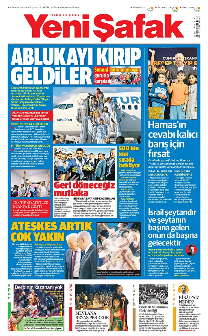 Gazze ablukasını kırmayı başaran Sumud Filosu’nun 37’si Türk vatandaşı 137 aktivist İsrail’de alıkonuldukları Ketziot Hapishanesi’nden İstanbul’a getirildi. “Özgür Filistin” sloganlarıyla inleyen İstanbul Havalimanı’nda büyük coşku ve gurur vardı.