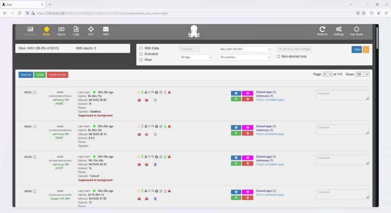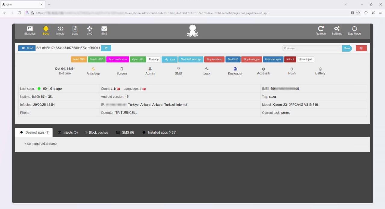 Geriye dönük 6 ay boyunca yapılan takipler sonucunda, 318 oltalama saldırısında kullanılan internet sitesi ele geçirilerek kapatıldı. Ayrıca, mobil telefonlara yüklenen zararlı yazılımları yönetmek için kullanılan kontrol paneli de ele geçirildi.